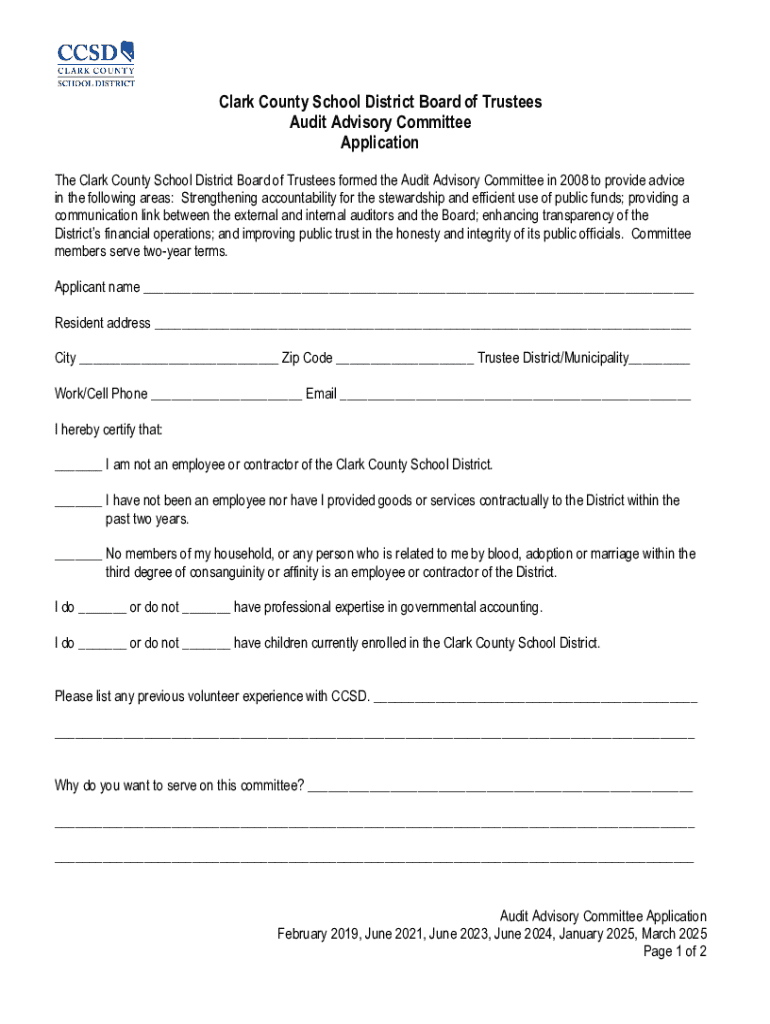 The audit advisory committee plays a critical role in ensuring transparency and accountability within organizations, particularly in sectors such as education and public service. The committee typically reviews audit reports, provides recommendations, and oversees the implementation of auditing processes. The audit advisory committee application form is a doorway for prospective members who wish to contribute their expertise and insights into enhancing governance and financial management.