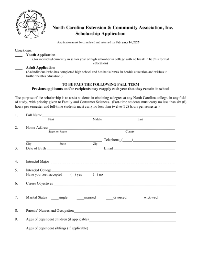 Get the free North Carolina Extension & Community Association, Inc. Scholarship Application