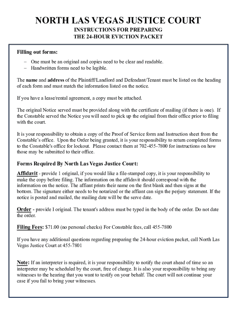 Get the free North Las Vegas Justice Court Instructions for Preparing the 24-hour Eviction Packet