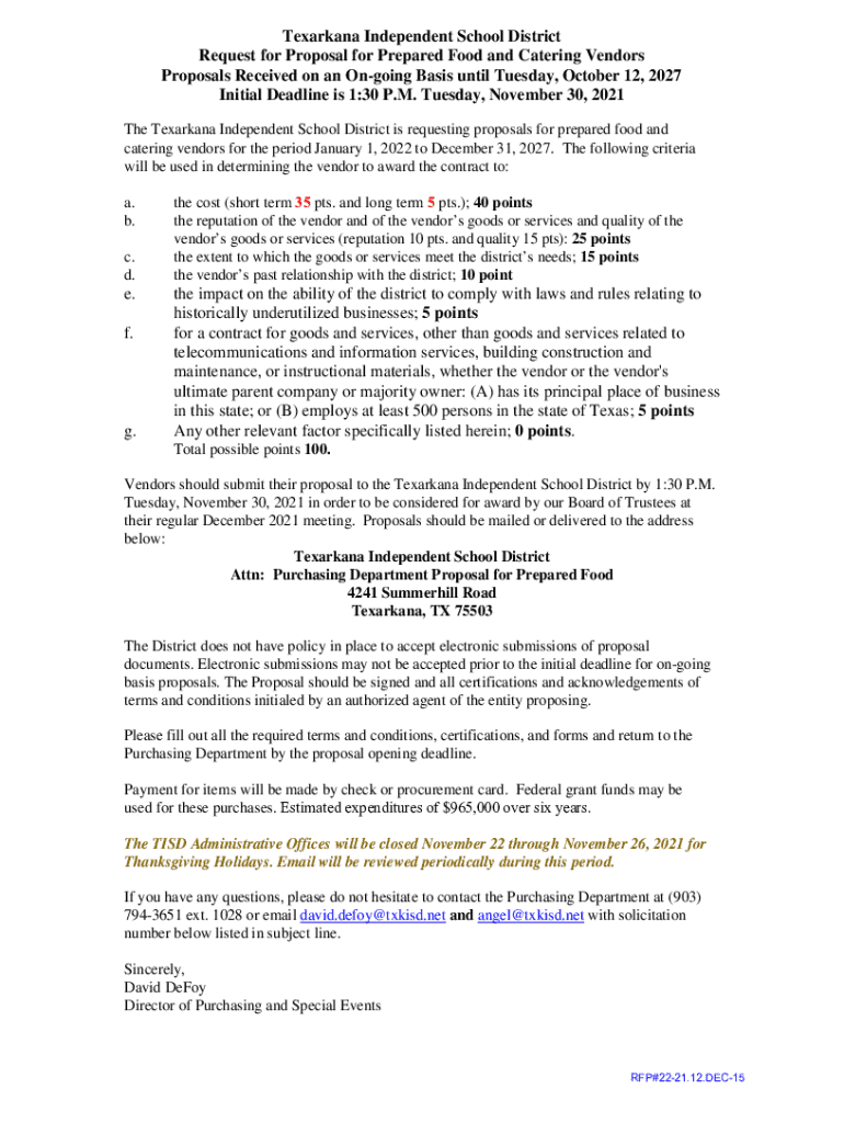 Get the free Request for Proposal for Prepared Food and Catering Vendors