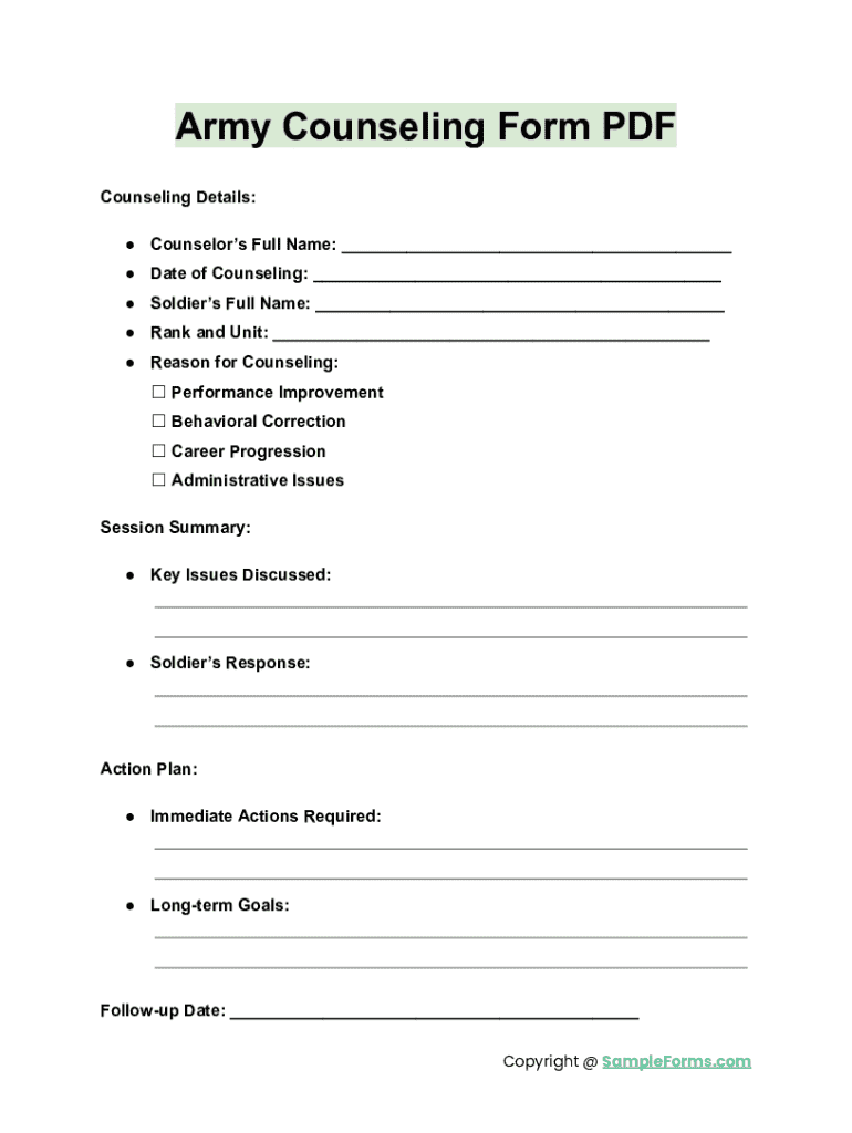 Understanding the Army Counseling Form PDF Form: A Comprehensive Guide