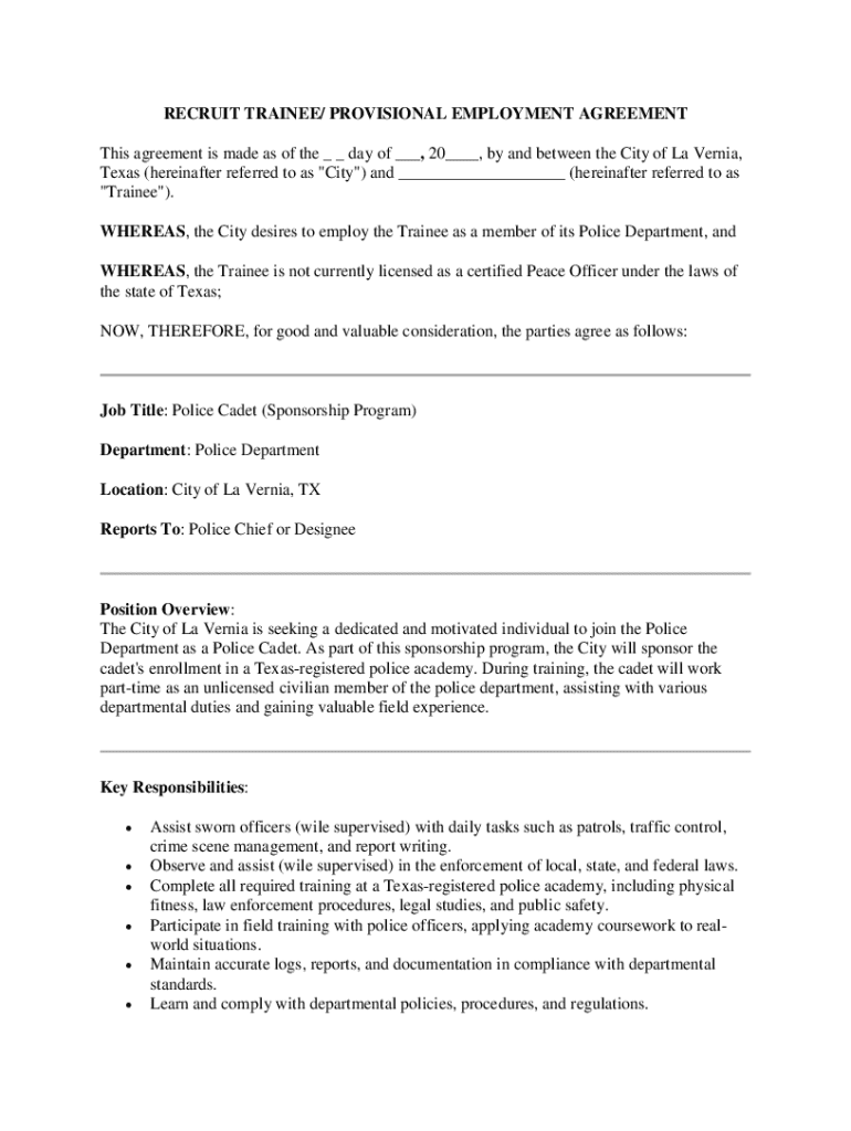 Get the free Recruit Trainee/ Provisional Employment Agreement