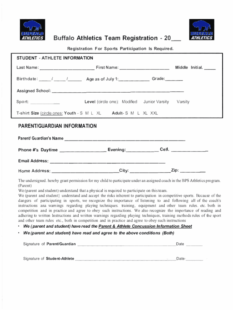 To register for the Buffalo athletics team, you’ll first need to access the buffalo athletics team registration form. This can be done easily via pdfFiller, where the form is available for download and online editing. Once you have the form, review the detailed sections to ensure you provide accurate and comprehensive information.