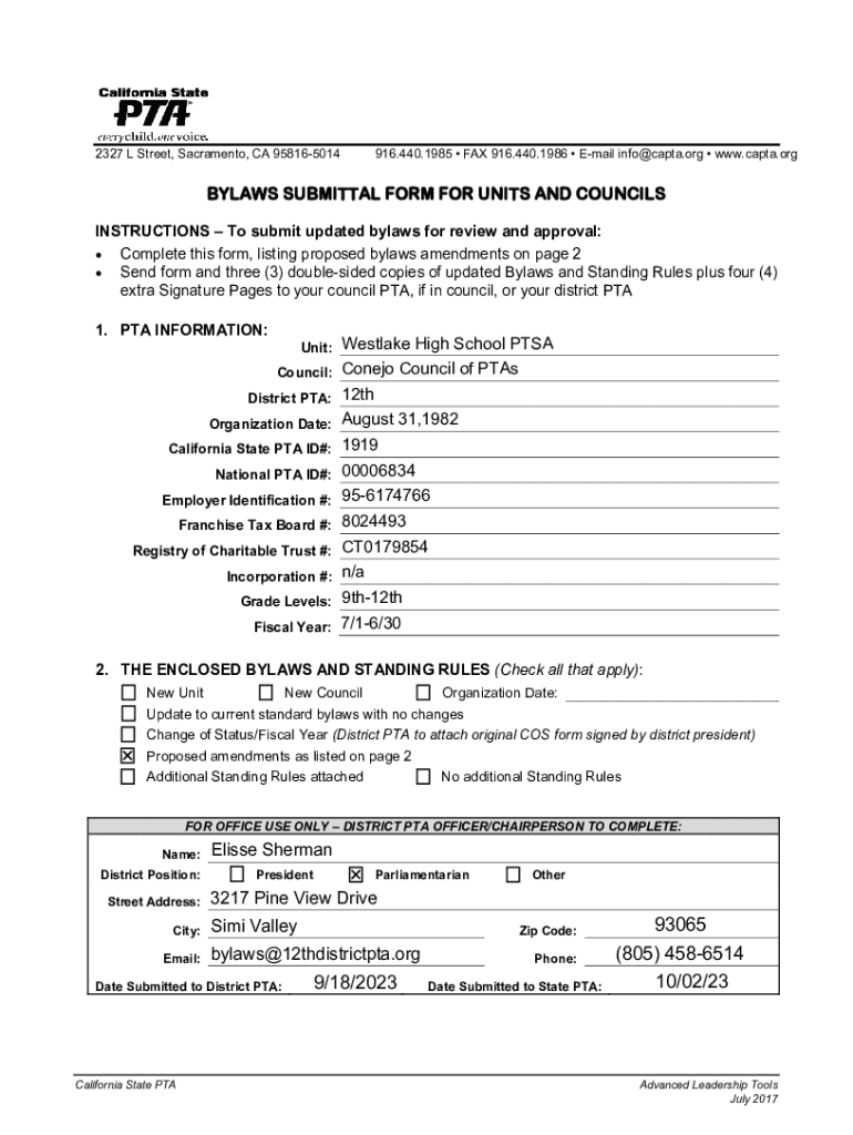 Get the free Bylaws Submittal Form for Units and Councils