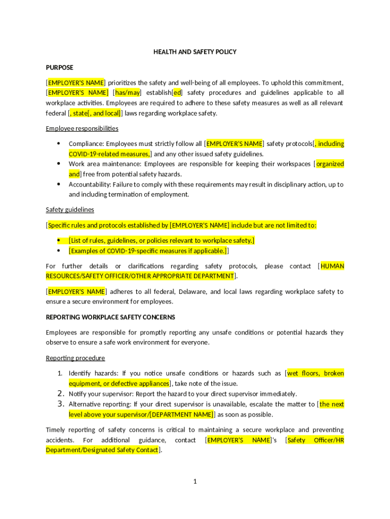 A comprehensive health and safety policy is pivotal for organizations seeking to protect their employees and mitigate risks. It is not merely a formality; it represents a commitment to employee welfare and legal compliance. By defining clear processes and expectations, this policy serves as a roadmap for maintaining a safe work environment.