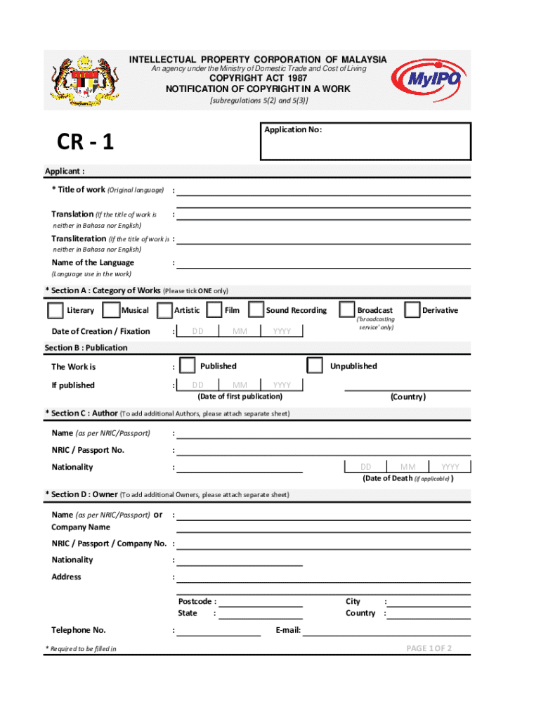 Get the free Notification of Copyright in a Work