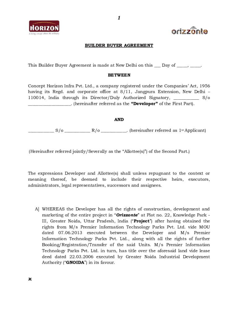 Get the free Builder Buyer Agreement