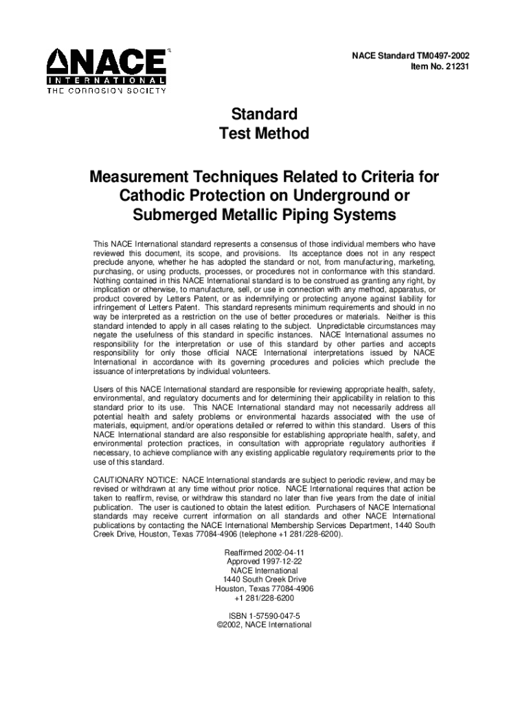 Obtain a copy of the NACE Standard TM0497-2002 document.