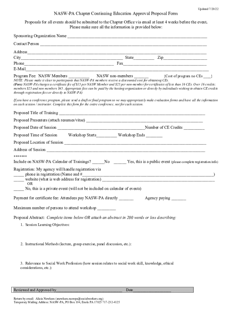 Get the free Nasw-pa Chapter Continuing Education Approval Proposal Form