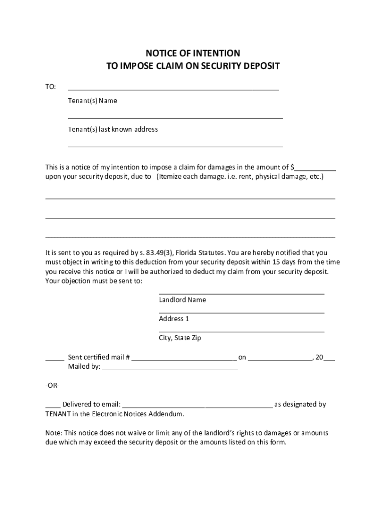 Get the free Notice of Intention to Impose Claim on Security Deposit