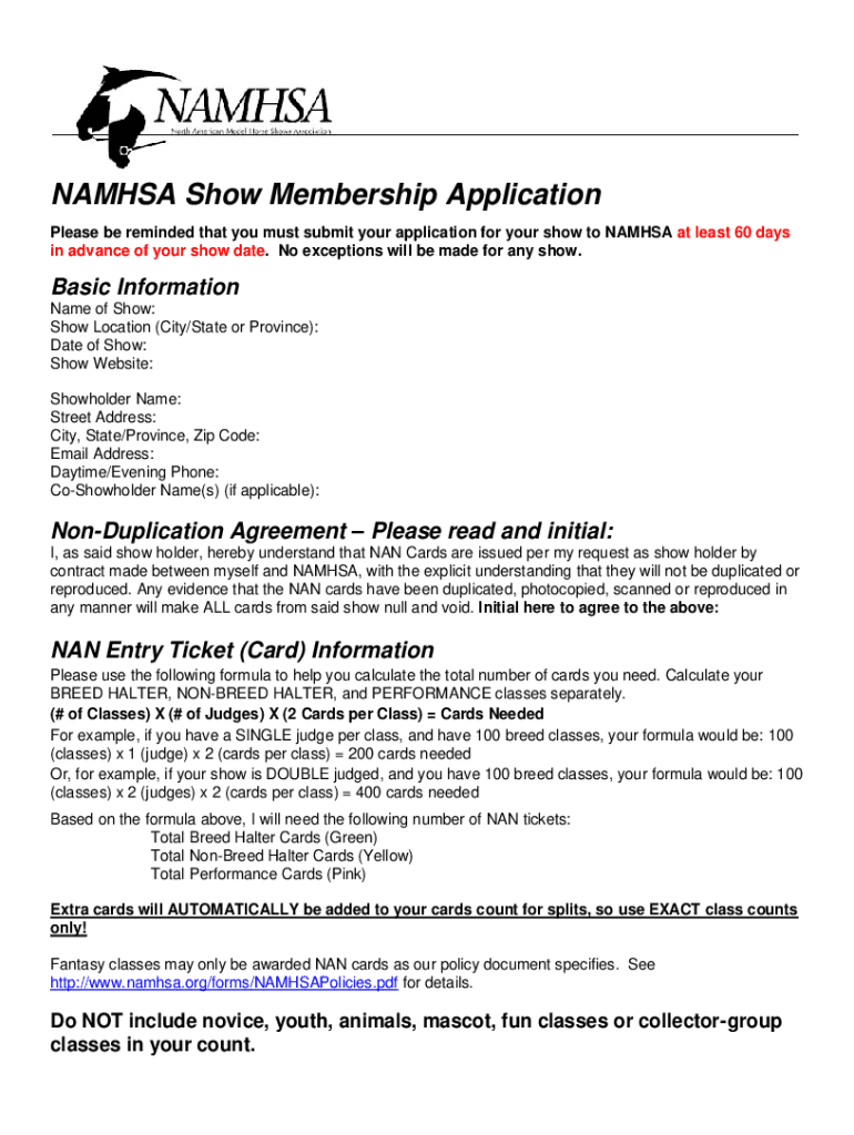 Get the free Namhsa Show Membership Application