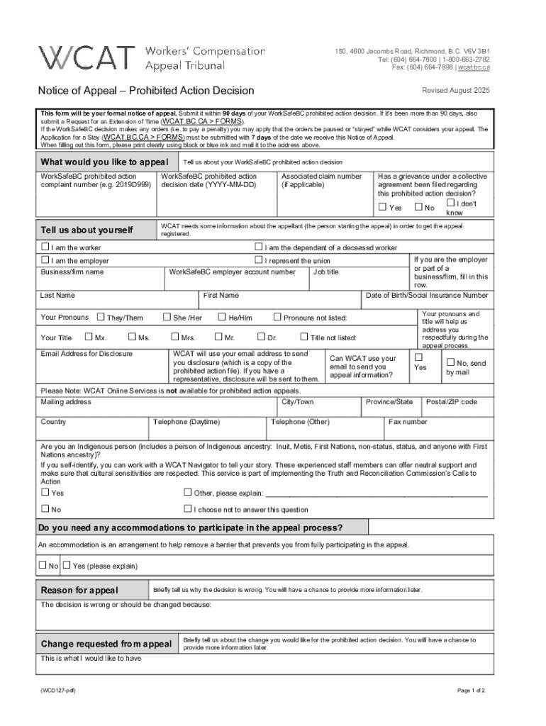 Get the free Notice of Appeal – Prohibited Action Decision
