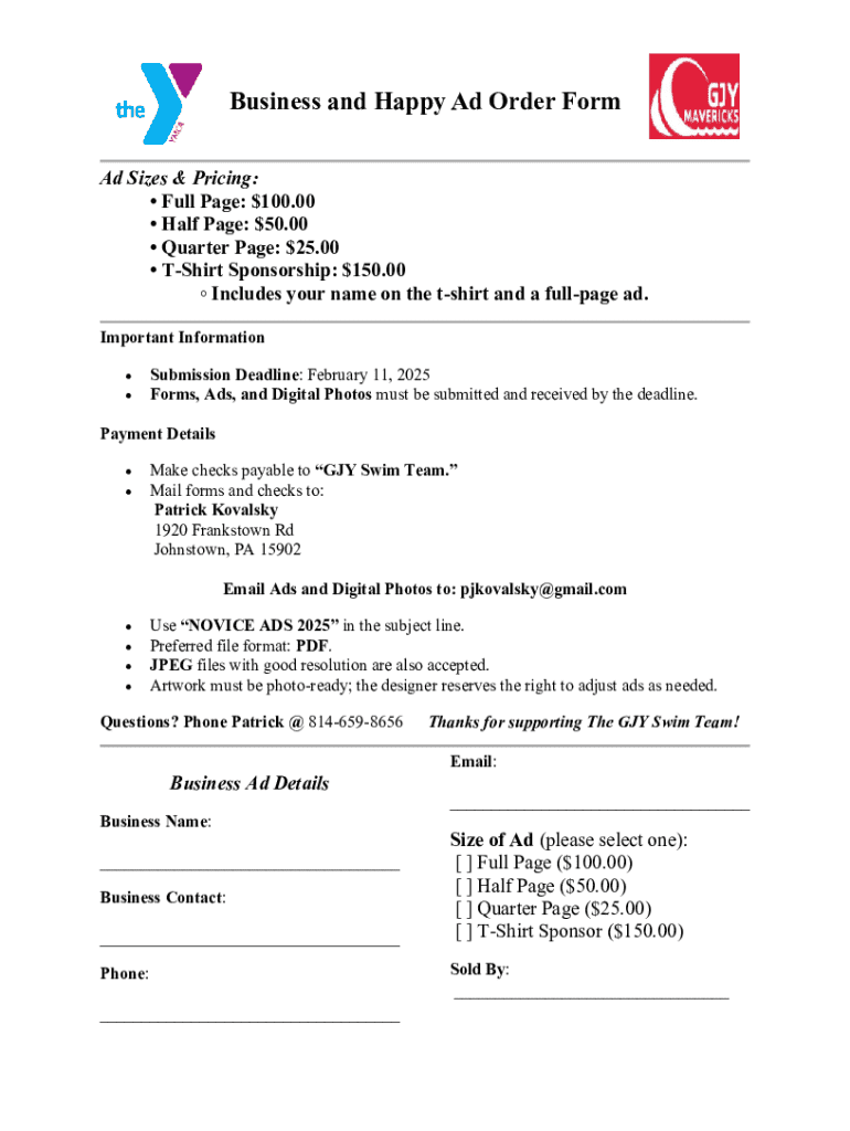 Get the free Business and Happy Ad Order Form