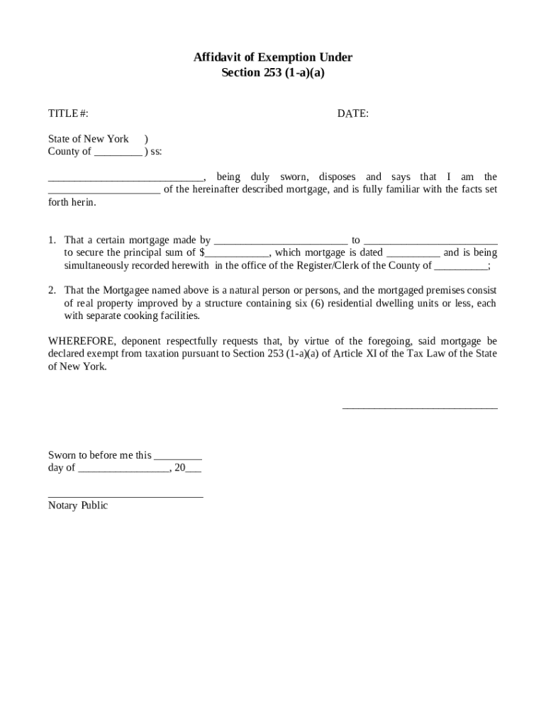 Affidavit of Exemption Under Section 253 (1-a)(a) template instructions