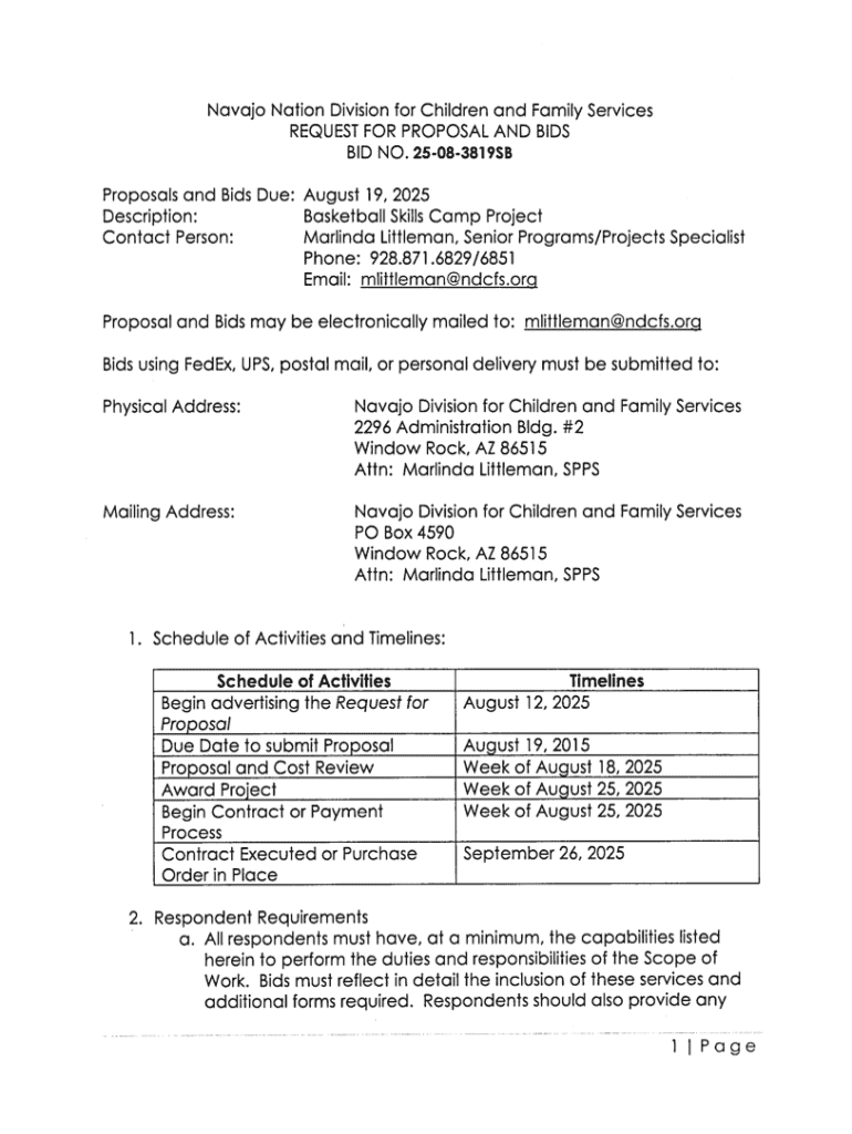 Get the free Navajo Nation Division for Children and Family Services Request for Proposal and Bids