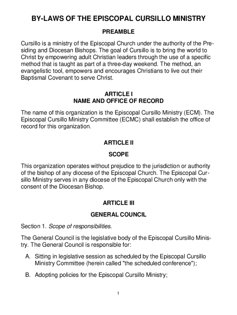 Get the free by-laws of the Episcopal Cursillo Ministry
