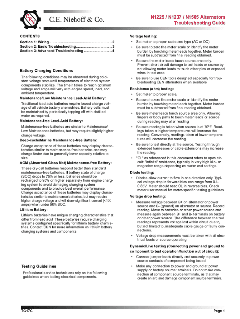 Get the free N1225 / N1237 / N1505 Alternators Troubleshooting Guide