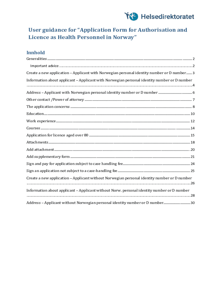 Get the free Application Form for Authorisation and Licence as Health Personnel in Norway