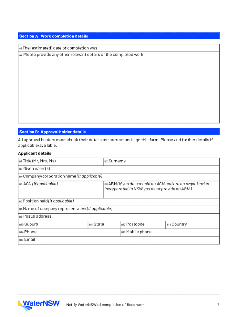 Get the free Notify Waternsw of Completion of Flood Work