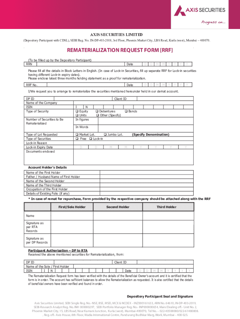 Get the free Rematerialization Request Form - simplehai axisdirect