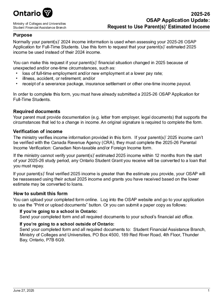 Understanding when to file an update is vital; the OSAP office expects timely responses to ensure that all aid calculations reflect your current situation.