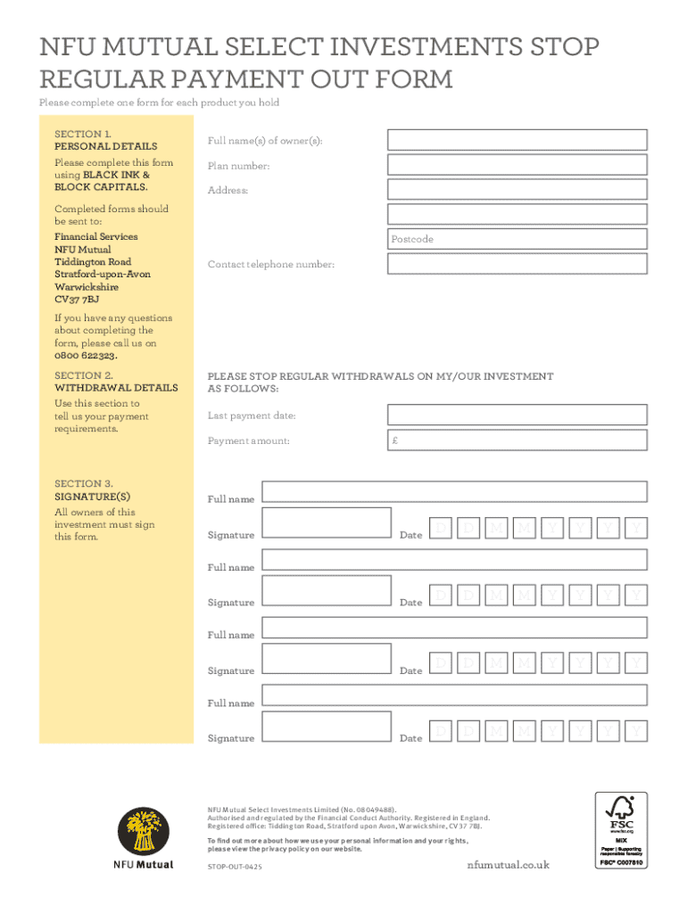 Get the free Nfu Mutual Select Investments Stop Regular Payment Out Form