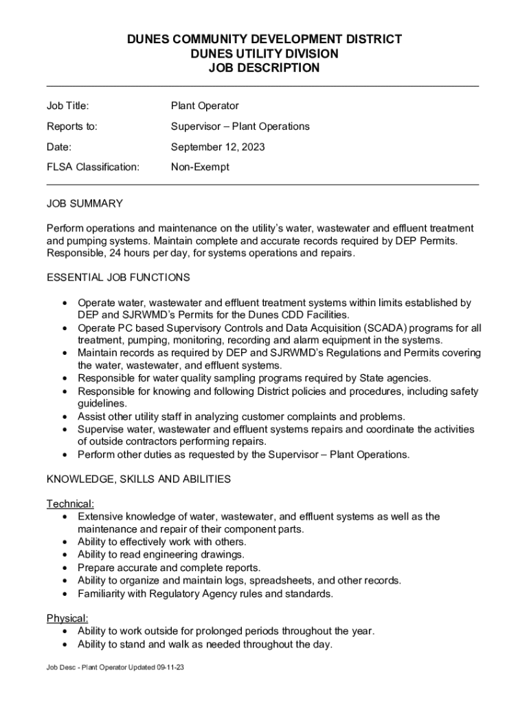 Get, Create, Make and Sign plant operator job description