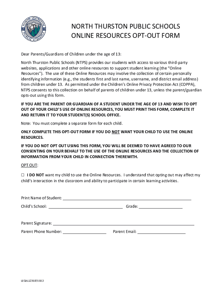 Get the free Online Resources Opt-out Form