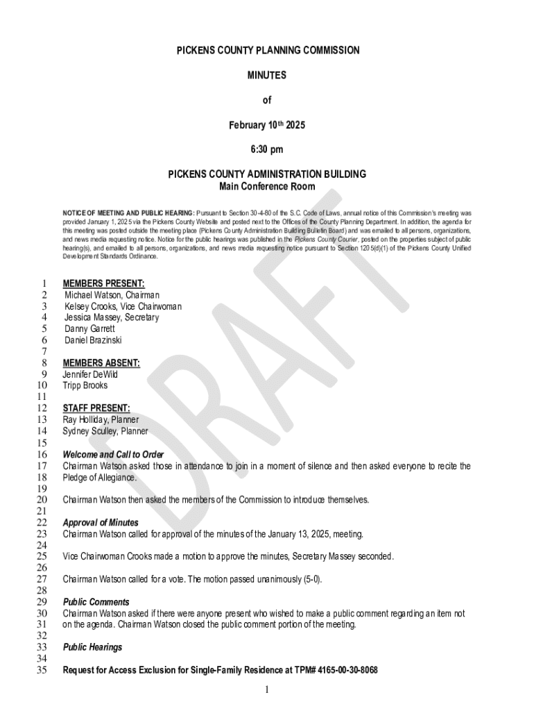 Get the free Pickens County Planning Commission Minutes