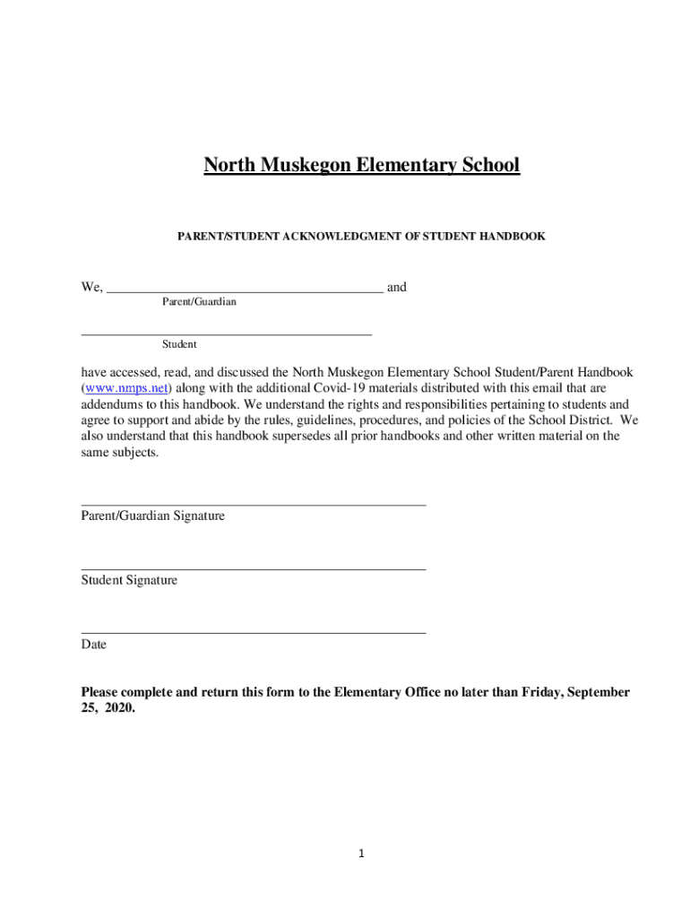 Get the free North Muskegon Elementary School Parent/student Acknowledgment