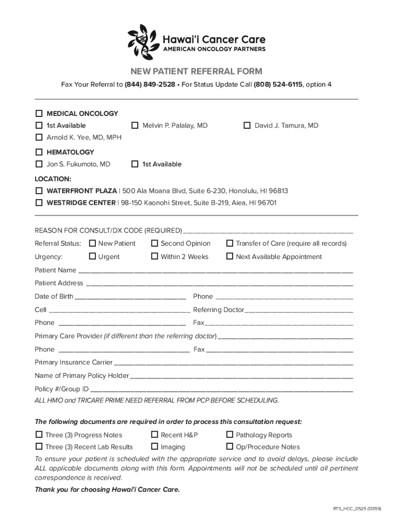 Filling out a new patient referral form is a straightforward process that can significantly streamline patient management. To begin, gather all necessary patient information, including full name, contact details, and relevant medical history. Having this information readily available will make the completion process smoother and help avoid back-and-forth communication with patients or referring physicians.