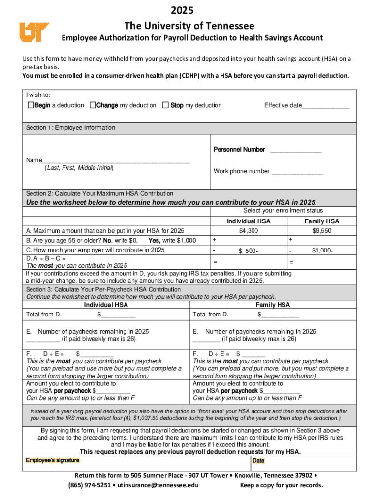 Get the free Employee Authorization for Payroll Deduction to Health Savings Account