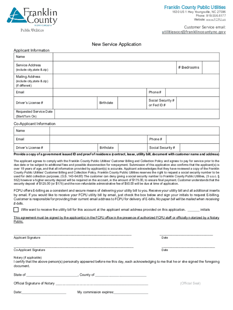Get the free New Service Application