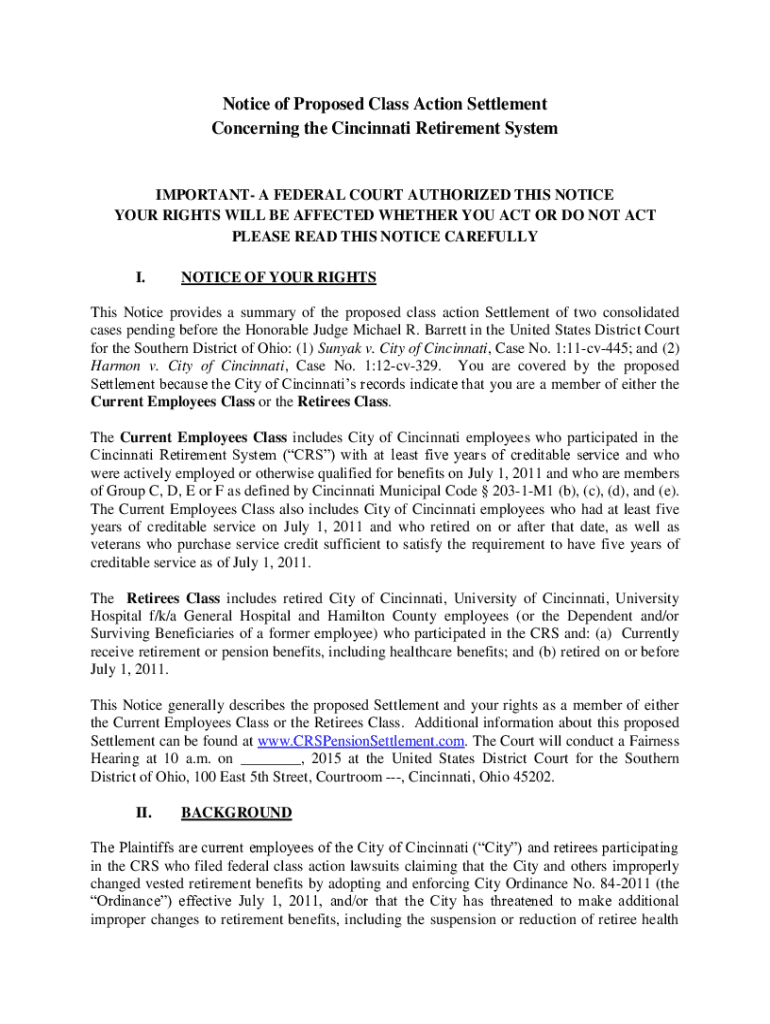 Get the free Notice of Proposed Class Action Settlement