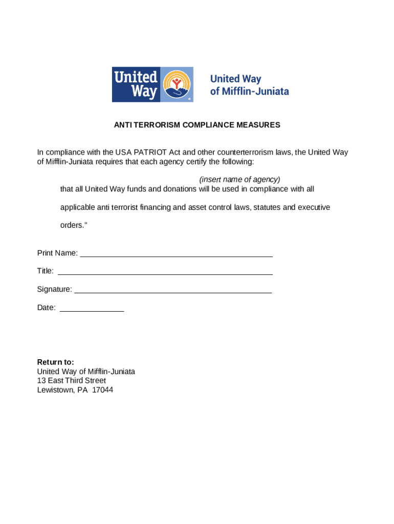 The anti-terrorism compliance measures form serves as a crucial instrument for organizations as they strive to maintain compliance with applicable laws and regulations. This form not only streamlines the collection of necessary information but also acts as a formal record of the due diligence processes undertaken.