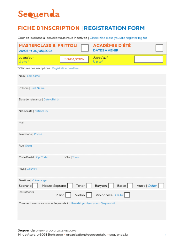 Obtenir le gratuit Fiche D’inscription | Registration Form