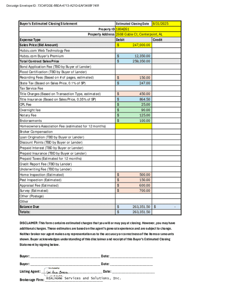 Get the free Buyer's Estimated Closing Statement