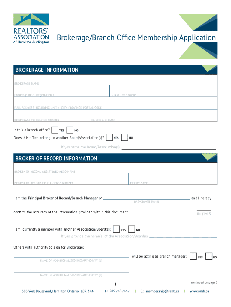 The brokerage branch office membership application form is a comprehensive document requiring meticulous attention to detail. Each section must be filled out accurately to avoid potential delays in processing.
