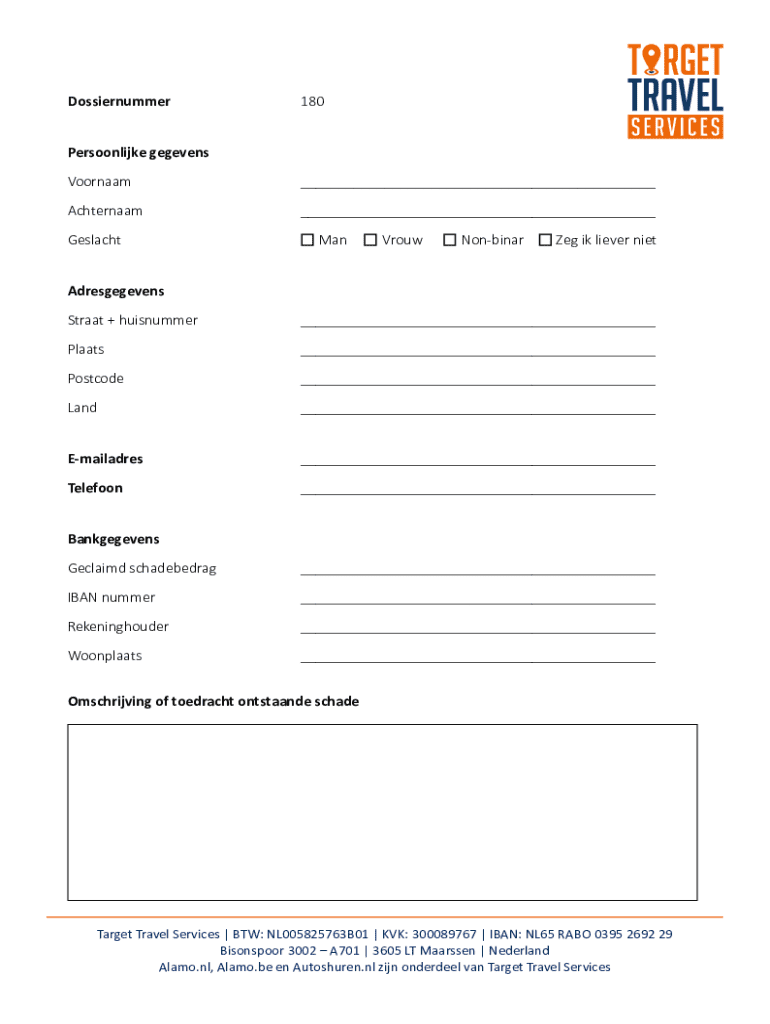 Welke informatie moet worden gerapporteerd op no risk declaratie formulier?