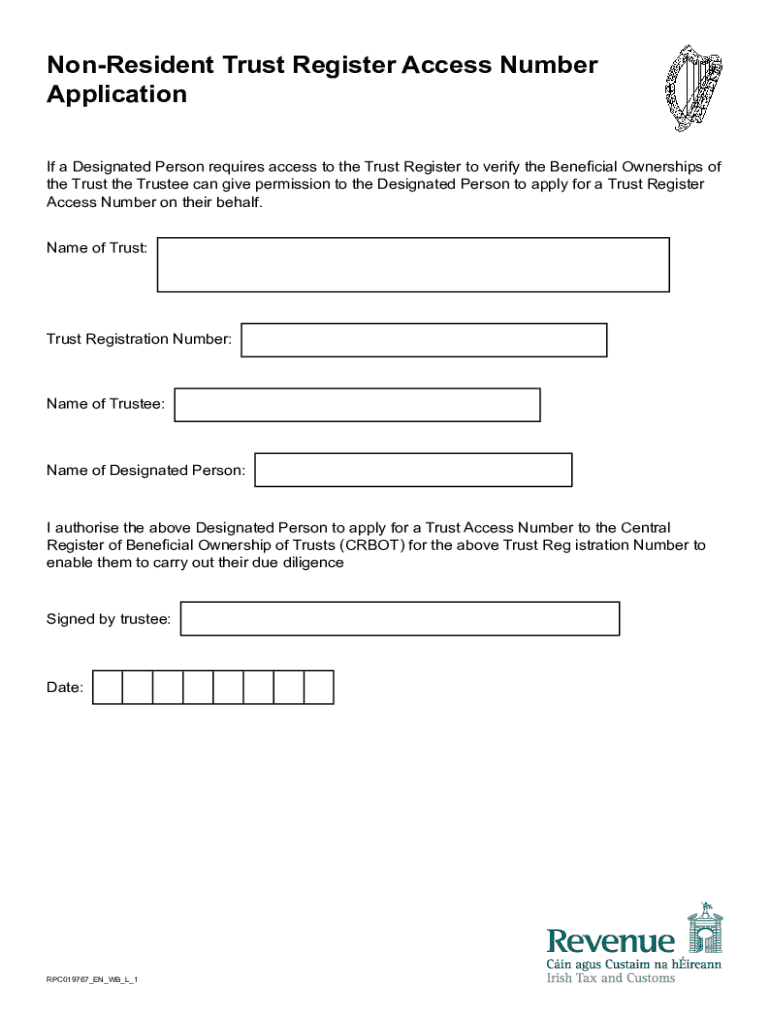 Get the free Non-resident Trust Register Access Number Application