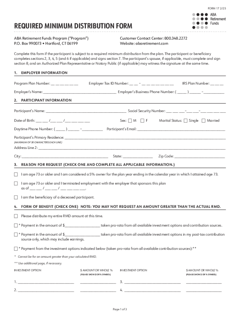 Filling out the required minimum distribution form involves several essential sections. Begin by providing your personal information, such as your name, address, and Social Security number. This data helps the IRS maintain accurate records for tax compliance. Next, specify the retirement accounts from which you’re distributing funds. Indicate whether these are Traditional IRAs, 401(k)s, or other qualifying accounts.