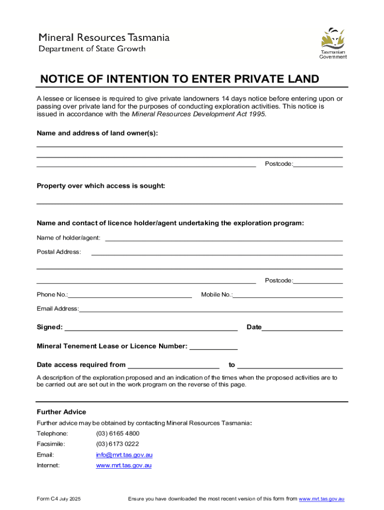 Get the free Notice of Intention to Enter Private Land
