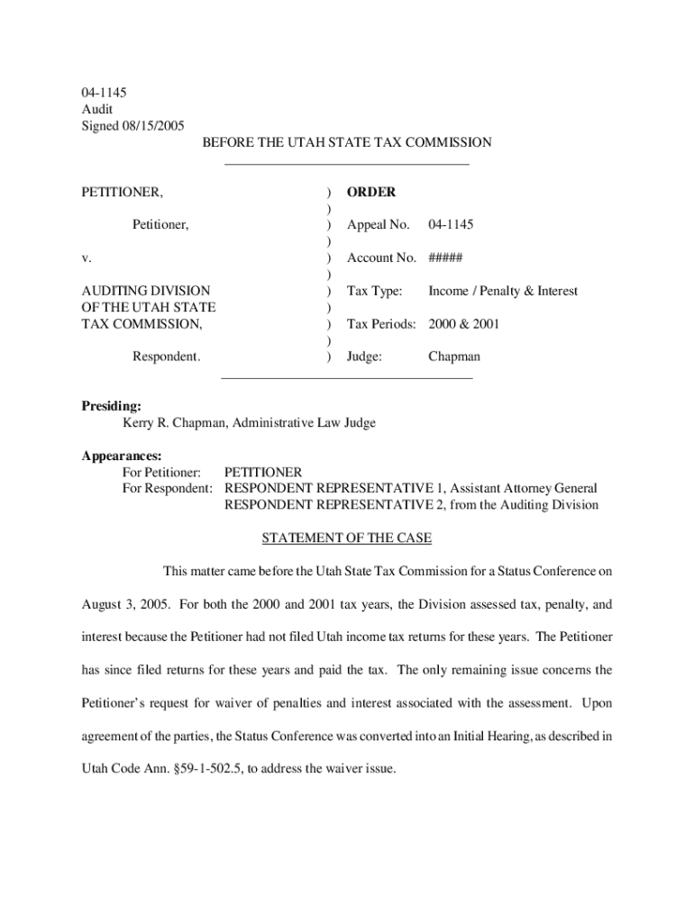 Several forms are essential for tax audits in Utah. These include the Statutory Notice, which indicates the start of the audit process, and various compliance forms that may be requested during the audit. It’s crucial for taxpayers to fill out relevant documents accurately—failure to do so can result in significant delays or complications during the audit.
