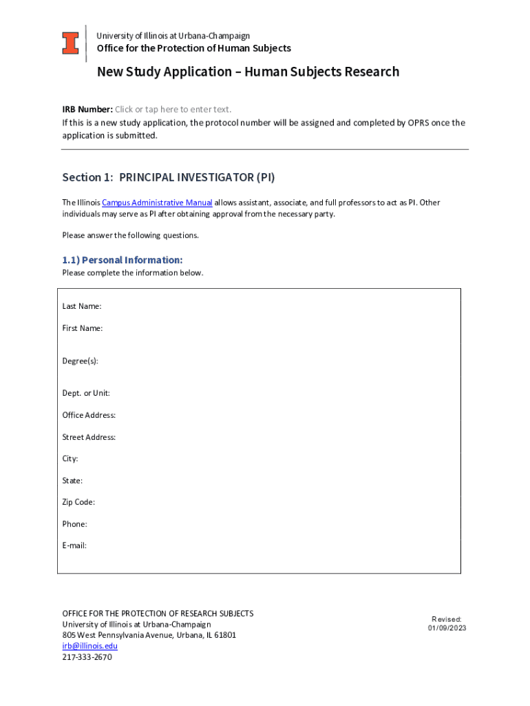 Get the free New Study Application – Human Subjects Research - oprs research illinois