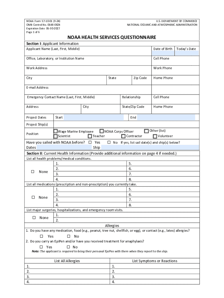 Step-by-step instructions for filling out NOAA Form 57-10-01