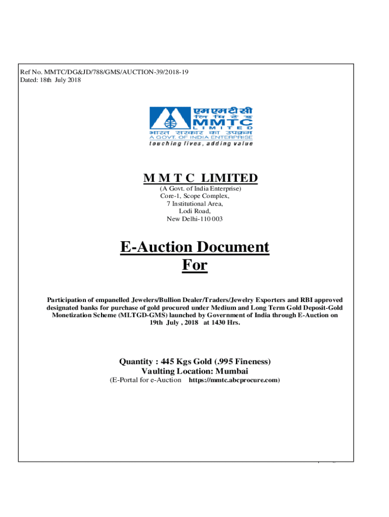 This document outlines the terms and conditions for participation in an EAuction for the purchase of gold under the Medium and Long Term Gold DepositGold Monetization Scheme (MLTGDGMS) launched by