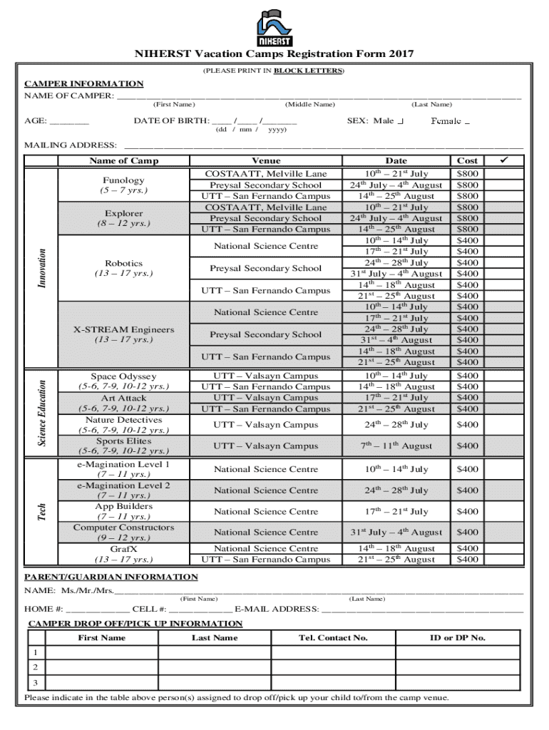 Completing the NIHERST Vacation Camps registration form is straightforward and necessary for securing a spot in this enriching experience. Here’s a step-by-step guide to walk you through the process.