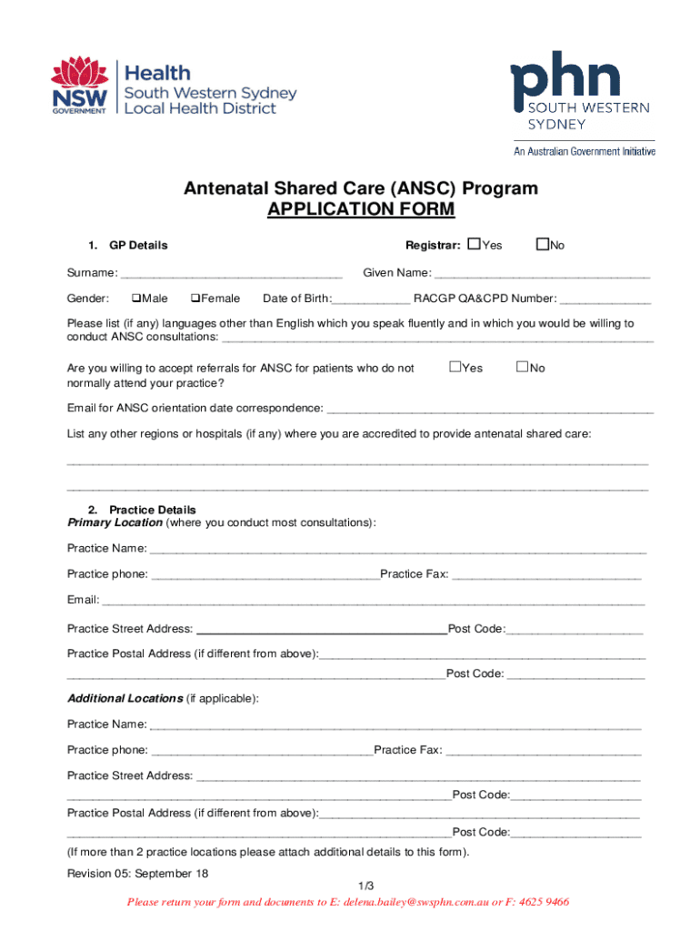 Get the free Antenatal Shared Care (ansc) Program Application Form