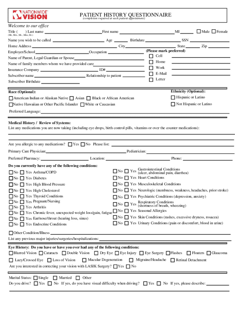 To fill out a patient history questionnaire, patients should read each question carefully and provide accurate information about their medical history, current medications, allergies, and any relevant family health issues.