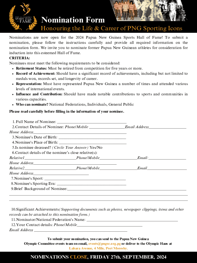 Get the free Nomination Form
